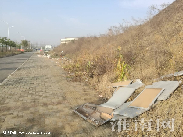 近日,淮河早報、淮南網記者在民裕大街通往市社會福利院路段北側路邊看到,一些建筑垃圾、廢棄物等被隨意丟棄在路邊,影響市容環(huán)境,有礙觀瞻。(記者)