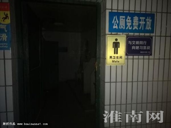 淮河大道立交橋下的一處免費(fèi)公共廁所內(nèi),由于安裝的照明燈不亮(如圖),給天黑如廁的市民帶來不便,希望相關(guān)部門能及時(shí)修復(fù)。(記者)