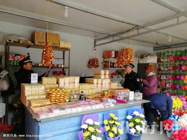 圖一:高新區(qū)城管在殯葬用品店進行宣傳。