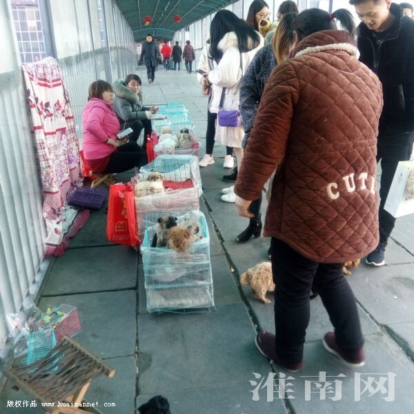 1月23日下午,淮河早報(bào)、淮南網(wǎng)記者在朝陽(yáng)中路人行天橋上看到,幾名中年婦女在橋上,一字?jǐn)[開(kāi)了6個(gè)狗籠,除了每個(gè)狗籠都關(guān)著幾條小狗外,還有五六條小狗在天橋通道上亂跑。并且這幾名婦女不斷向過(guò)往路人推銷小狗,導(dǎo)致路人通行時(shí)常受阻。(記者)